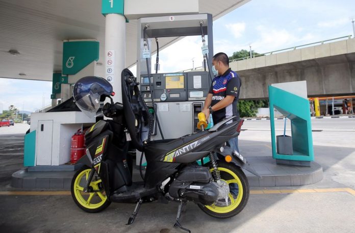 A man refuels his motorcycle at a Petronas petrol station in Ipoh November 2, 2020. — Picture by Farhan Najib