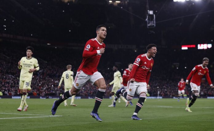 Manchester United’s Cristiano Ronaldo celebrates scoring their third goal against Arsenal at Old Trafford, Manchester December 2, 2021. — Reuters pic