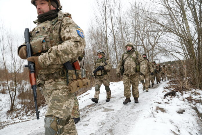 Reservists of the Ukrainian Territorial Defence Forces take part in military exercises on the outskirts of Kyiv, Ukraine January 29, 2022. — Reuters pic