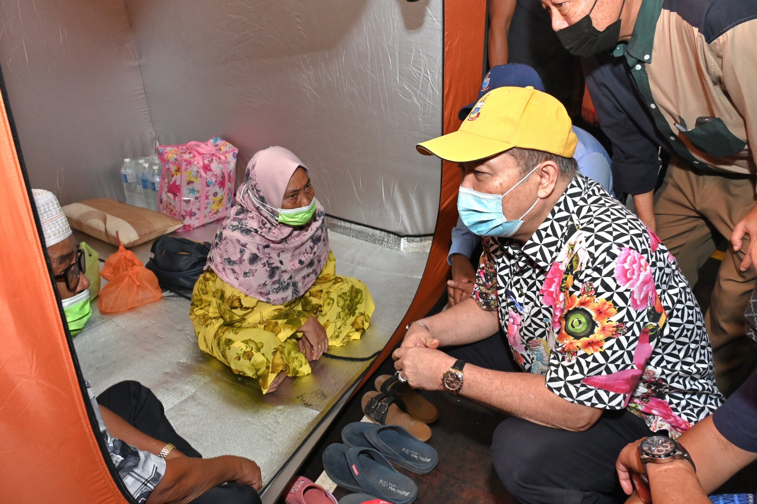 Hajiji talking to the fire victim. — Borneo Post pic