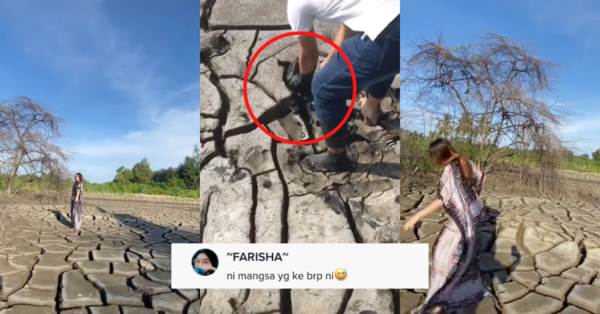 Menerusi video yang dimuat naik oleh @maizati_ di laman TikTok, kelihatan dia sedang merakam suaminya di tanah merekah.