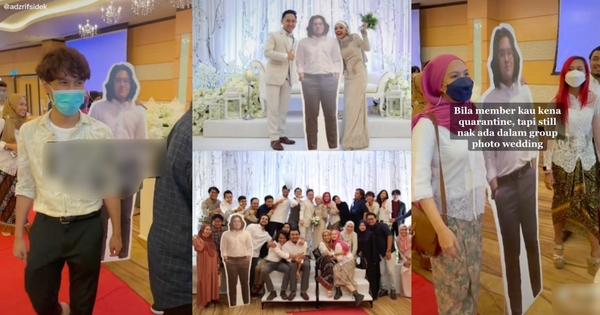 Difahamkan, kawanmereka itu terpaksa dikuarantin dan tidak dapat hadir ke majlis perkahwinan itu. Malah, dia juga meminta agar mahu turut berada dalam group photo rakan-rakannya yang lain.