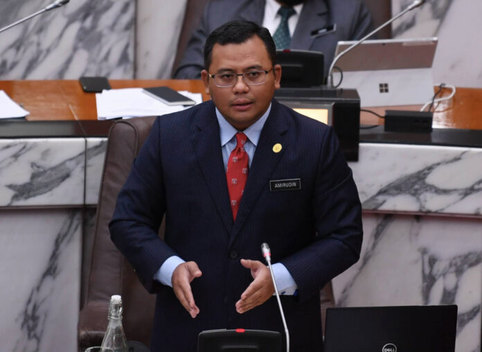Selangor Mentri Besar Datuk Seri Amirudin Shari speaking at the Selangor State Legislative Assembly sitting in Shah Alam, March 21, 2022. – Bernama pic