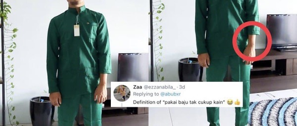 Perkara itu sekali gus membuatkan baju Melayu tersebut kelihatan pelik kerana singkat di sebelah kiri. Apa yang lebih menghiburkan adalah apabila lelaki itu menerima pelbagai komen lucu daripada netizen.