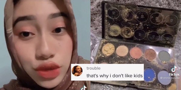 “Ini aku baru je beli kirim dekat orang. Bila aku cakap dengan mak budak tu anak dia buat barang makeup aku jadi mainan,aku pula yang disalahkan sebab letak barang makeup dekat dengan budak kecil. Bukan salah anaknya,” katanya.