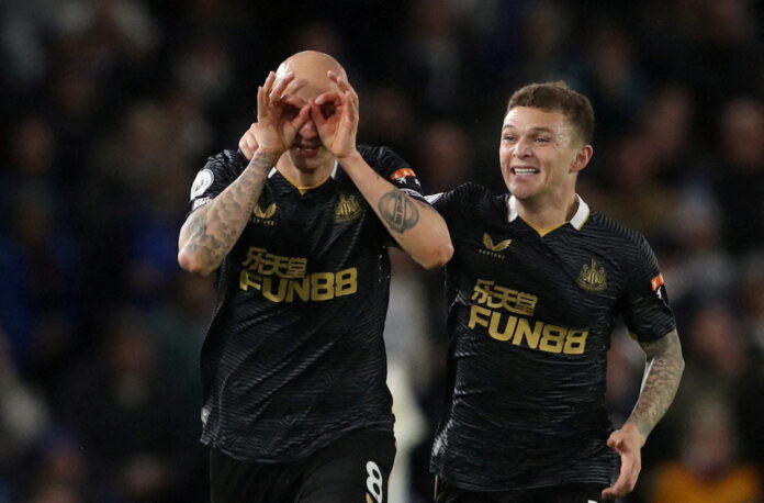 Newcastle United’s Jonjo Shelvey celebrates scoring their first goal with Kieran Trippier, January 22, 2022. — Reuters pic
