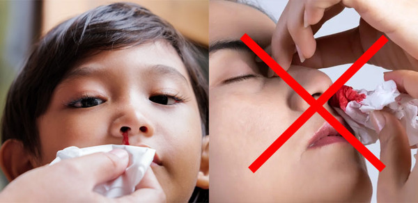 – Stay calm and firmly pinch your nostrils closed. Direct pressure for five to 10 minutes helps to stop the bleeding.