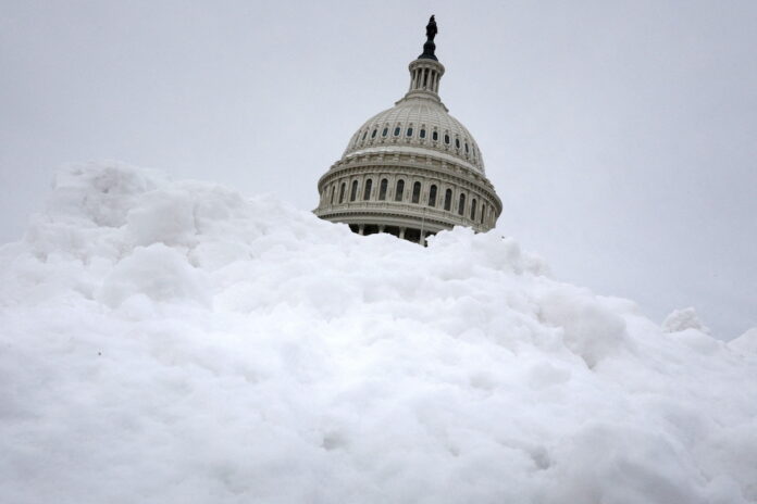 General view of the US Capitol and a snow bank following a storm, on Capitol Hill in Washington January 5, 2022. — Reuters pic