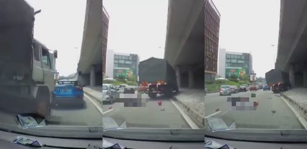 “The lorry collided with a van before crashing into a Yamaha Y125ZR motorcycle and a Perodua Axia at the same time, thus causing the motorcycle rider to fall to the ground.”