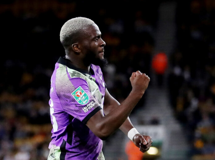Tottenham Hotspur’s Tanguy Ndombele celebrates scoring their first goal against Wolverhampton Wanderers at Molineux Stadium, Wolverhampton, Britain, September 22, 2021. — Action Images via Reuters