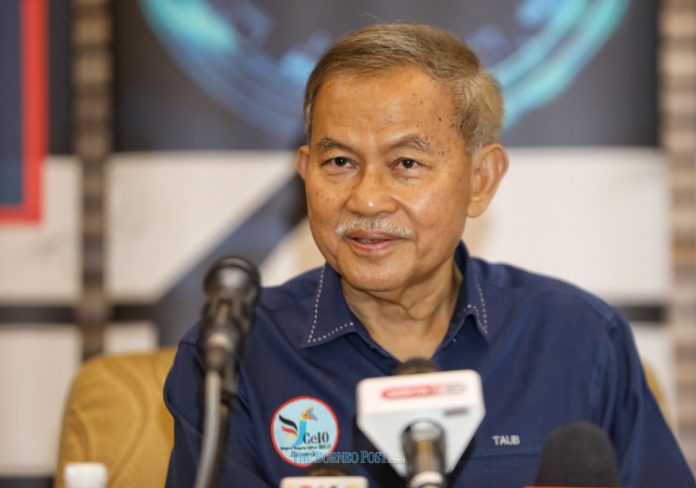 Datuk Talib Zulpilip speaking to reporters at the press conference. – Photo by Chimon Upon.