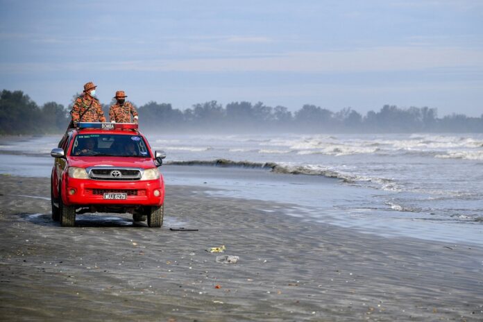Fire and Rescue personnel patrol along the waters off Tanjung Balau December 16, 2021. – Bernama pic