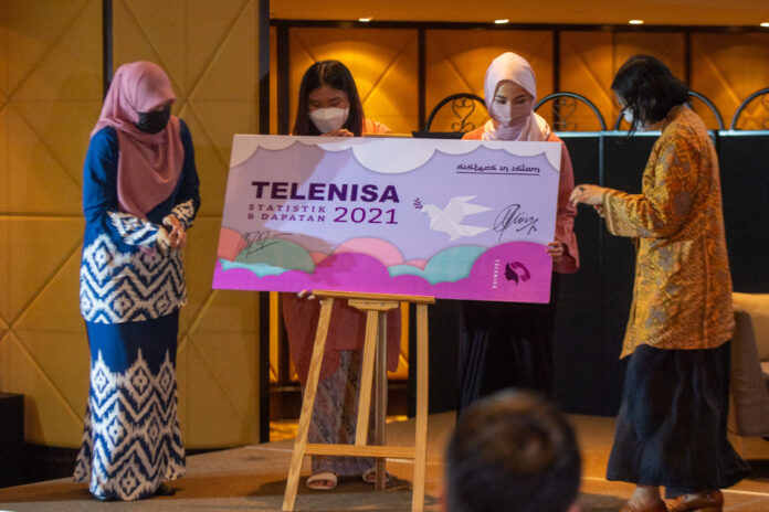 Senator Fadhlina Siddiq (left) and Petaling Jaya MP Maria Chin Abdullah (right) officiating the launch of the Telenisa Statistics and Findings 2021 Book in Kuala Lumpur, April 20, 2022. –Picture by Shafwan Zaidon