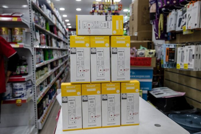 Gmate Covid-19 rapid antigen self-test kits are seen for sale at a Big Pharmacy outlet in Kuala Lumpur July 28, 2021. — Picture by Firdaus Latif