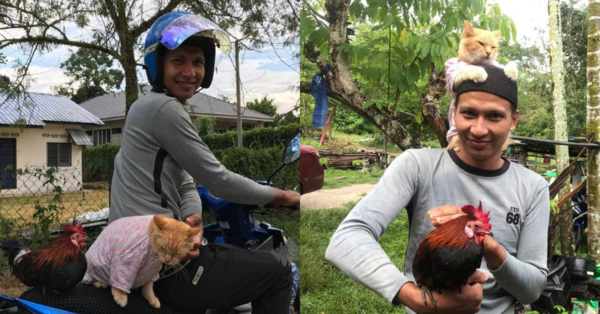 A man in Kelantan recently went viral for always taking his pet cat and chicken on motorcycle rides