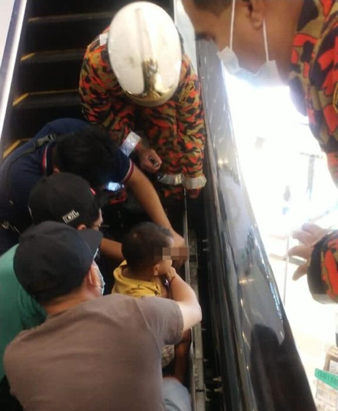 Three-year-old boy’s foot gets stuck in escalator at mall in Putrajaya