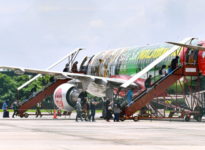 AirAsia passengers from Ipoh boarding the aircraft headed for Langkawi, September 17, 2021. — Bernama pic