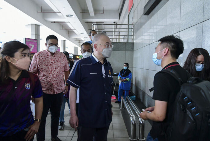 Transport Minister Datuk Seri Wee Ka Siong with travellers at the Immigration, Customs, Quarantine Complex at Bangunan Sultan Iskandar in Johor, April 1, 2022. — Bernama pic