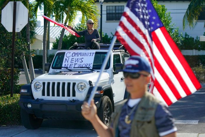 President Donald Trump’s supporters watch his motorcade drive by in West Palm Beach, Florida on Sunday. (AP pic)
