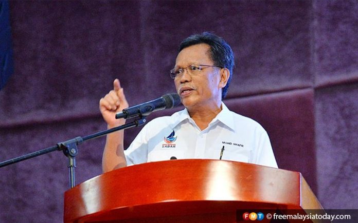 Shafie Apdal berucap di perhimpunan agung tahunan Warisan di Kota Kinabalu.