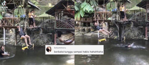 Namun, lain pula yang terjadi kepada seorang gadis ini apabila dia terpaksa menahan malu ketika sedang bermain buaian di sungai bersama kawannya. Video itu telah tular di laman TikTok dan mencuri tumpuan ramai.