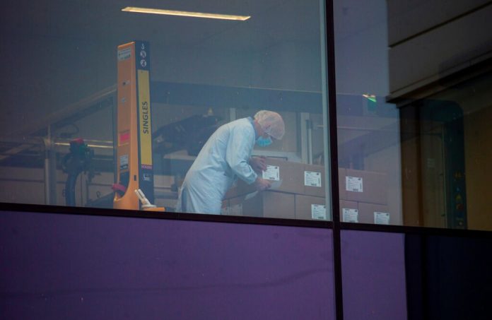 An employee checks boxes at Pfizer Manufacturing plant in Puurs, Belgium on Thursday. (AP pic)