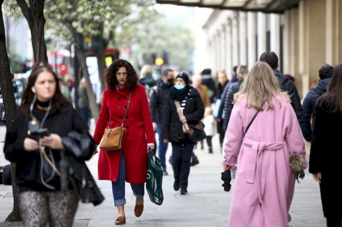 People walk on a street, as the coronavirus disease (Covid-19) restrictions ease, in London, Britain April 12, 2021. — Reuters pic