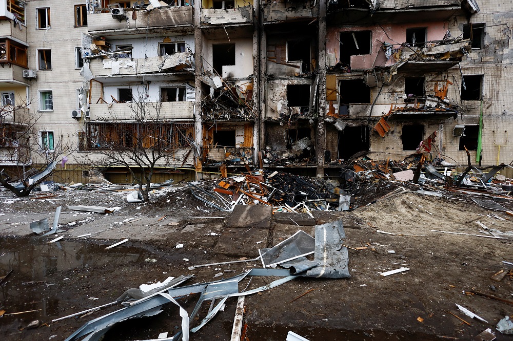 A damaged residential building is seen, after Russia launched a massive military operation against Ukraine, in Kyiv, Ukraine February 25, 2022. – Reuters pic