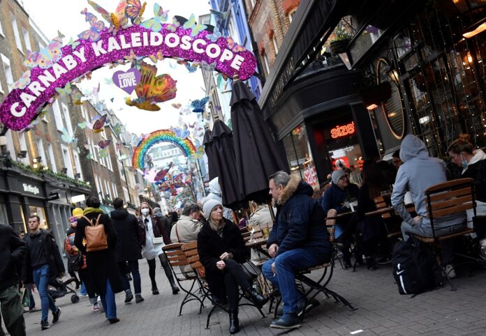 Customers drink in an outdoor seating area of a pub, amidst the spread of the Covid-19 pandemic, London December 28, 2021. – Reuters pic