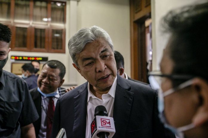 Datuk Seri Ahmad Zahid Hamidi today questioned the Perikatan Nasional (PN) government’s Covid-19 regulations after a minister allegedly held a large gathering in Hulu Langat. ― Picture by Firdaus Latif