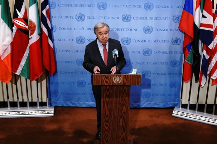 United Nations Secretary-General Antonio Guterres makes a statement as he speaks to the media at UN headquarters in the Manhattan borough of New York February 24, 2022. – Reuters pic