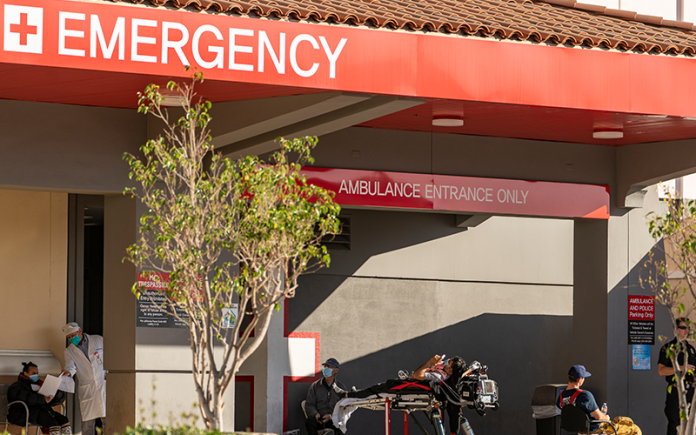 A patient receives oxygen while paramedics monitor him outside a medical centre in Los Angeles last week. (AP pic)