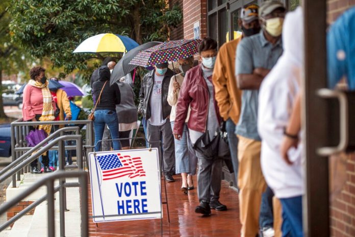 People wait in line during advance voting for Georgia’s Senate runoff election at the Bell Auditorium earlier this month. (AP pic)