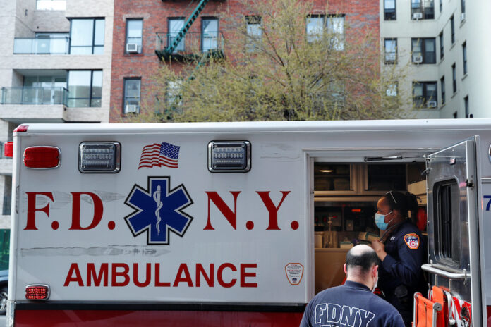 New York City Fire Department Emergency Medical Technicians assist a woman during the outbreak of the coronavirus disease (Covid-19) in New York, April 15, 2020. – Reuters file pic