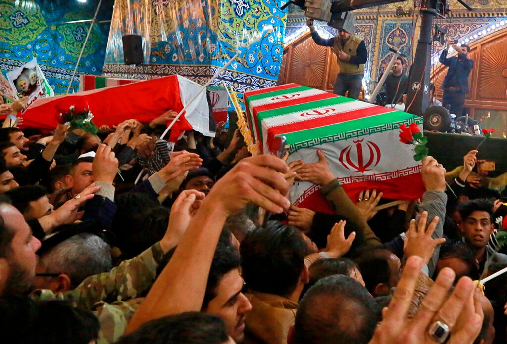 Mourners carry the coffin of Iran’s top general Qassem Soleimani in Karbala, Iraq last January. (AP pic)