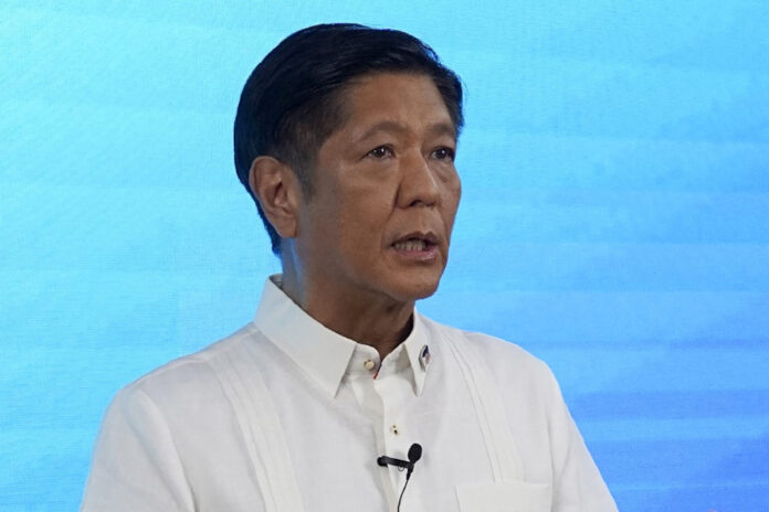 Presidential candidate Ferdinand Marcos Jr speaks to reporters at the campaign headquarters in Manila on May 11, 2022. — AFP pic