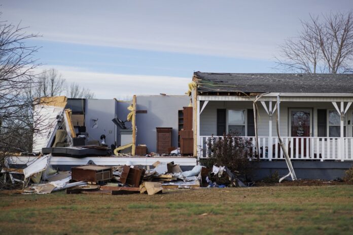 A home damaged by winds stands with some of the walls and roof missing after a tornado ripped through the area the previous evening on December 11, 2021 in Mayfield, Kentucky. — Getty Images via AFP