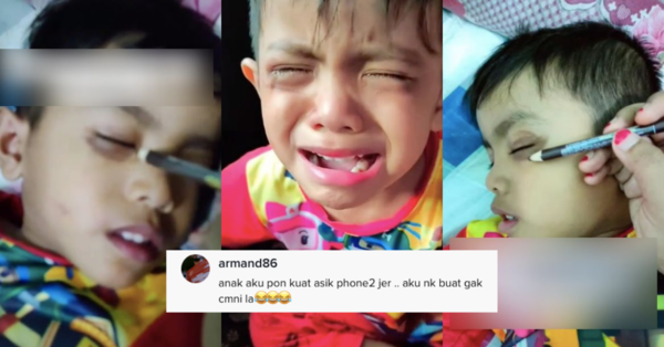 Menerusi video yang dimuat naik oleh @nikiysaaacikk di laman TikToknya, kelihatan seorang ibu sedang melukis mata anaknya menggunakan pensel untuk merias.