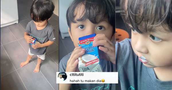 Sama seperti video yang tular di TikTok ini apabila seorang ibu berkongsi reaksi anaknya yang mahu minum kotak santan menarik perhatian ramai.