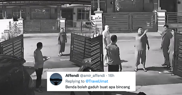 Menerusi video yang dimuat naik oleh @TravelJimat di Twitter, kelihatan seorang lelaki sedang mengamuk di hadapan rumah jirannya.