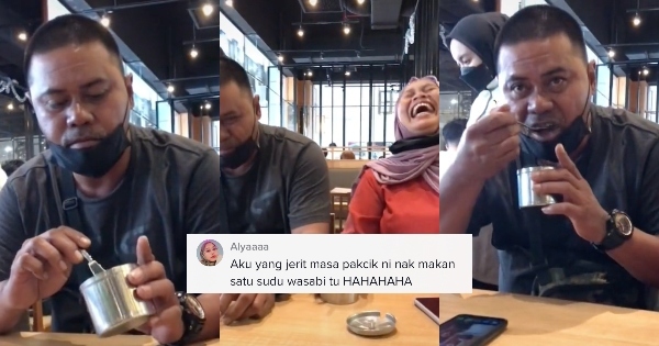 Menerusi video tersebut, kelihatan seorang pakcik dengan selamba menyuap sesudu wasabi ke dalam mulutnya dan kemudian meluahkannya kembali.