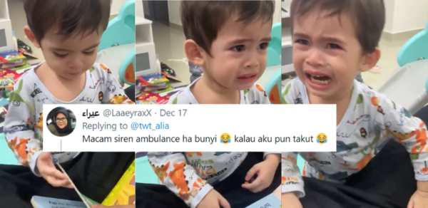 Namun, lain pula yang terjadi dengan video perkongsian di laman Twitter ini apabila seorang kanak-kanak menangis setelah mendengar bunyi haiwan daripada bapanya.