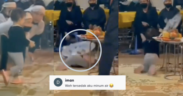 Apa yang lebih menarik perhatian adalah apabila si kecil itu berjalan ke arah tabung selepas ayahnya menghulur duit. Namun, tidak sempat meletakkan duit itu ke dalam tabung, kakinya terseliuh lalu jatuh di depan orang ramai.