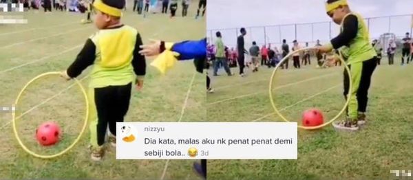 Menerusi perkongsian video daripada pengguna bernama Badang Malaysia iaitu ayah kepada kanak-kanak lelaki yang digelar Bobot itu, kelihatan dia sedang berlumba acara tarik bola menggunakan gelung.