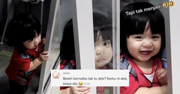 Apa yang lebih menghiburkan adalah, kanak-kanak itu yang dikenali sebagai Sofea siap membuat mimik muka comel dengan melekatkan mukanya pada sliding door.