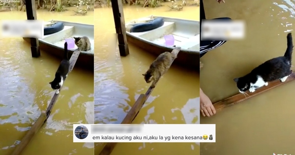 [VIDEO] Comel & Berani, Aksi Kucing Ini Naik Titi Kayu Nak Redah Banjir Jadi Perhatian