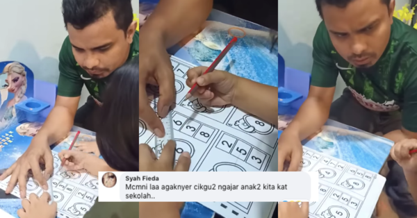 Menerusi video berkenaan, kelihatan seorang ayah sedang mengajar anaknya melakukan tugasan sekolahnya.
