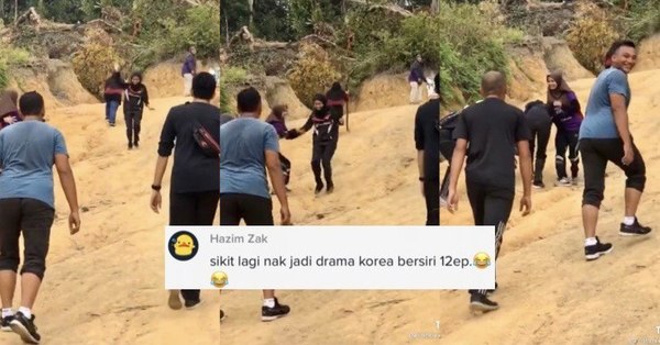 Namun, lain pula yang terjadi di dalam video tular ini apabila seorang gadis hampir terjatuh ketika sedang menuruni bukit bersama kawan-kawannya mencuri tumpuan ramai.