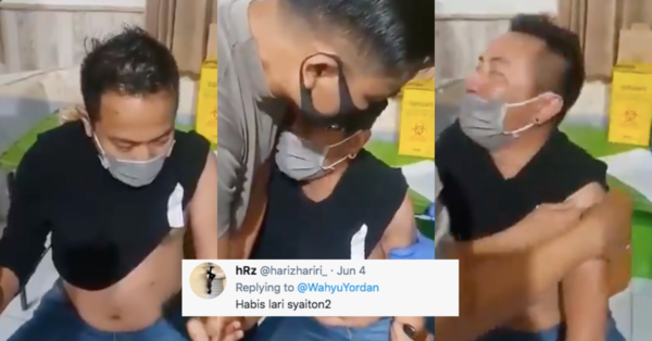 Menerusi video yang dimuat naik oleh @WahyuYordan di laman Twitternya, kelihatan seorang lelaki yang dipercayai rakannya sedang menunggu giliran untuk disuntik vaksin.