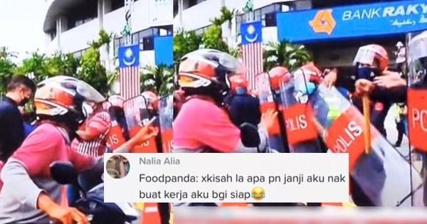 Rata-rata netizen turut terhibur melihat gelagat rider foodpanda itu yang gigih berusaha ingin menyelesaikan kerjanya menghantar makanan kepada pelanggan.